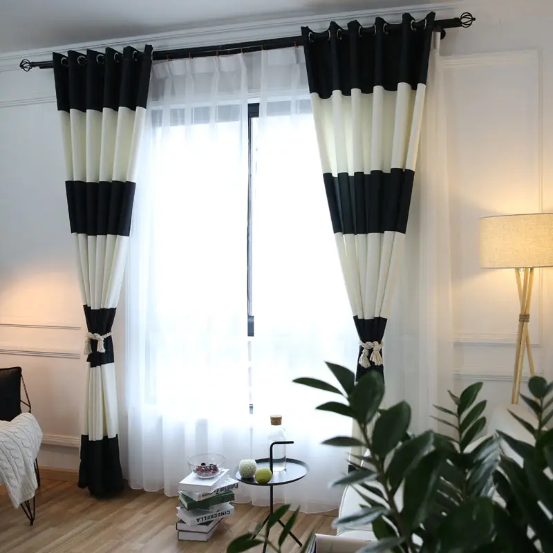 White Black Splicing Striped Blackout Curtains for the Bedroom Cotton Linen Modern Curtains for Liv