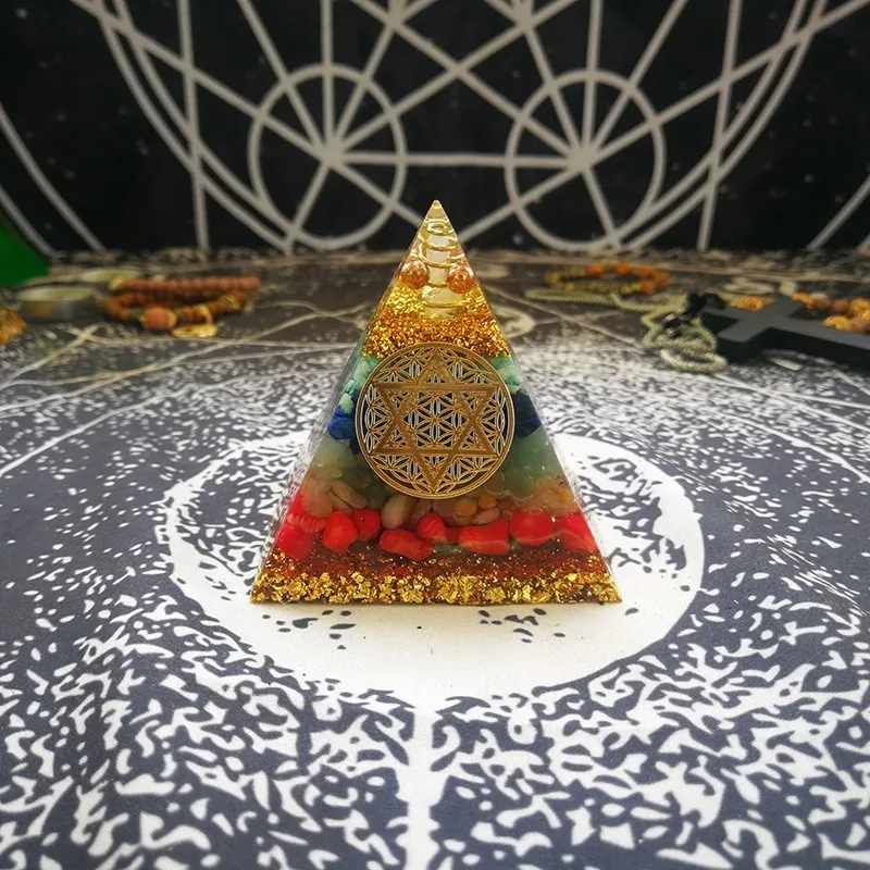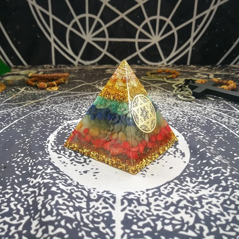 AURAREIKI Orgonite Pyramid 7 Chakra Zadkiel Energy Crystal Eliminates Negative Energy Lapis Tourmal
