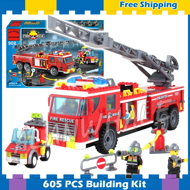 ORIGINAL 605pcs City Scaling Ladder Fire Engines Rescue Truck 3D Firefighter 908 Model Building Blocks Child