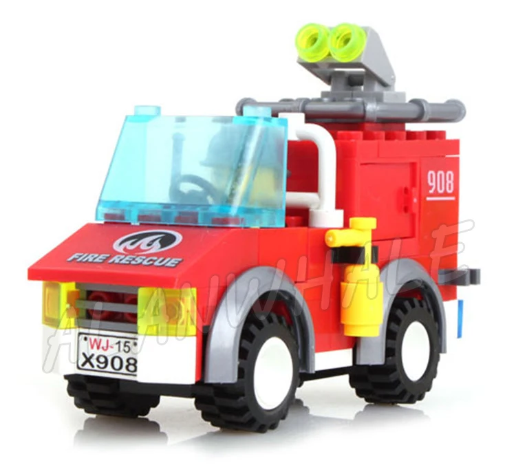605pcs City Scaling Ladder Fire Engines Rescue Truck 3D Firefighter 908 Model Building Blocks Child