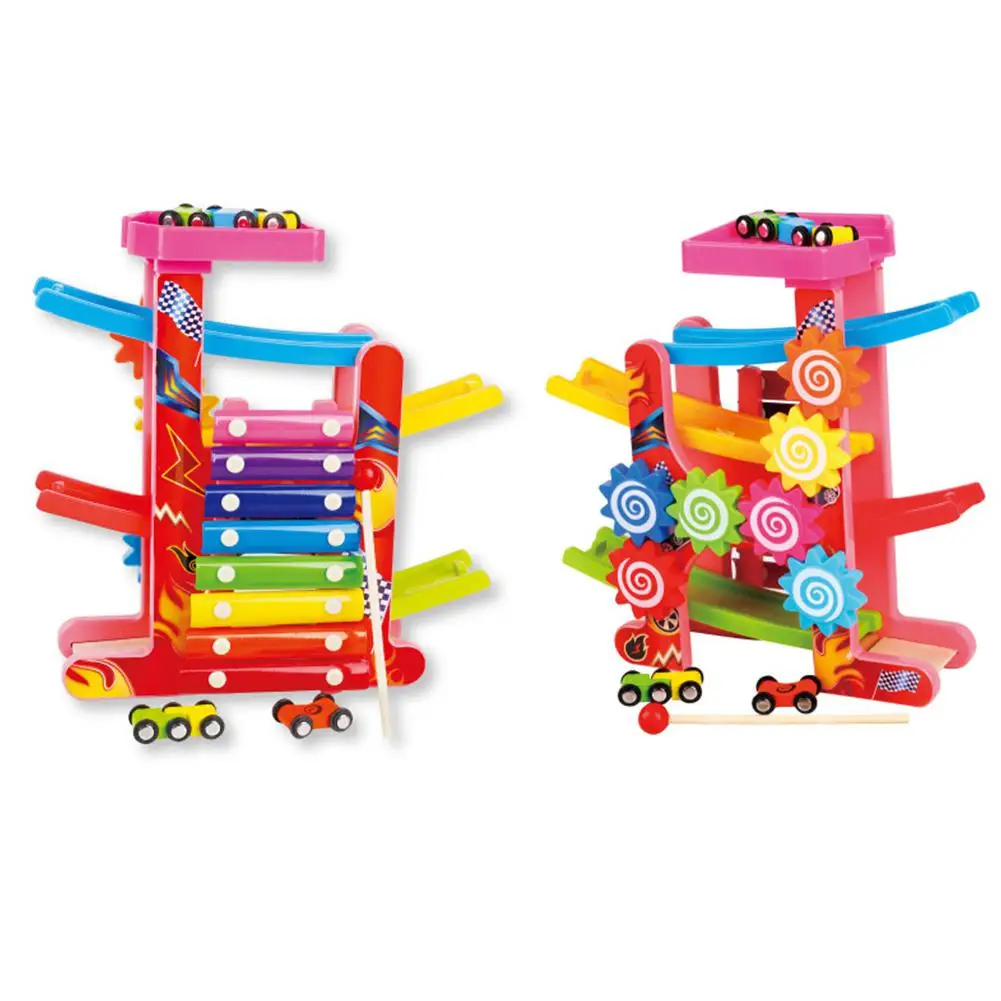 Hobbylane 3 in 1 Kids Slot Track Car Toys Ladder Gliding Wooden Slot Track Educational Toy