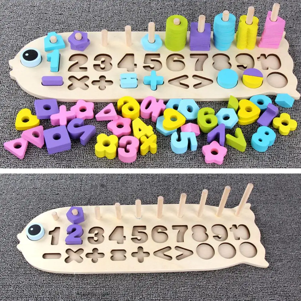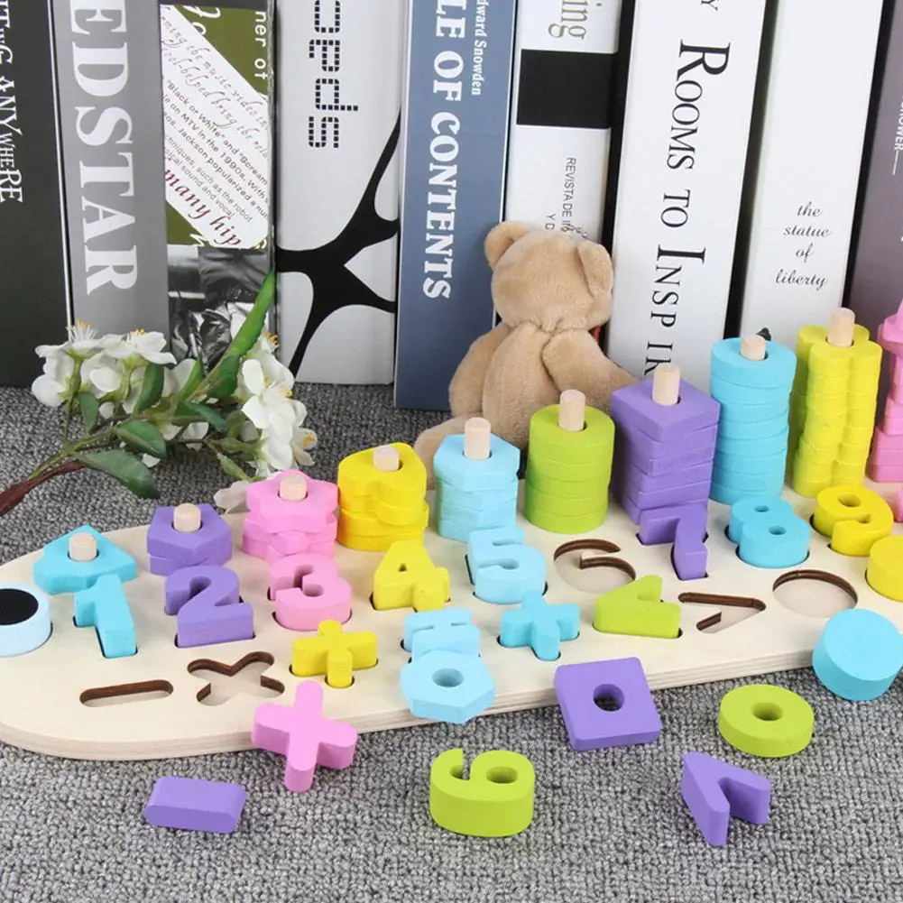 Children Wooden Materials Learning To Colors Count Numbers Matching Digital Shape Match Early Educa