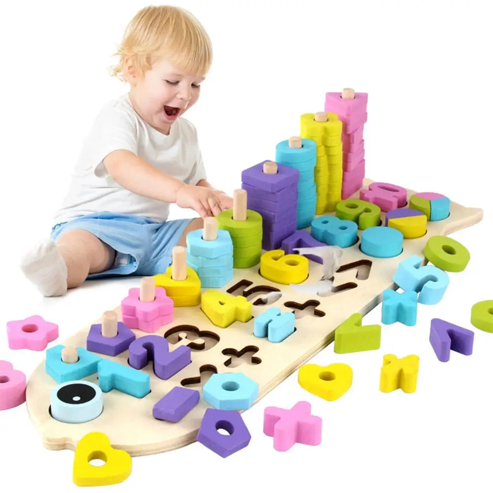 BEST QUALITY Children Wooden Materials Learning To Colors Count Numbers Matching Digital Shape Match Early Educa