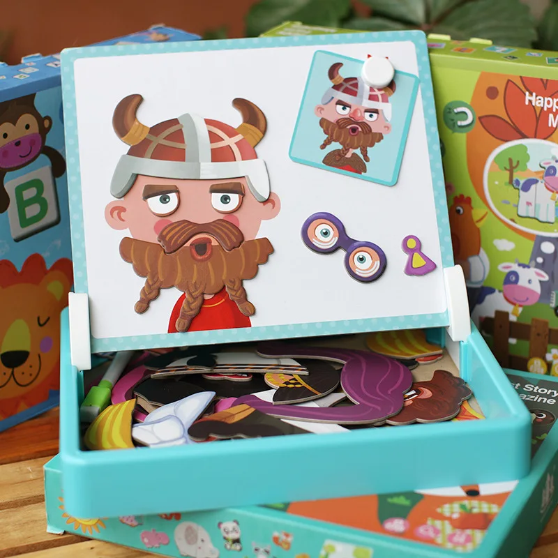 Magnets Montessori Toys Kids 2 In1 Magnetic Face & Drawing Board 3D Puzzles Montessori Materials Ed